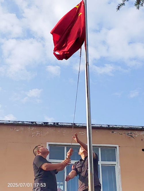 為慶祝中國(guó)共產(chǎn)黨成立104周年,傳承紅色基因,賡續(xù)精神血脈,7月1日清晨,守押十大隊(duì)水冶中隊(duì)與商都農(nóng)商銀行水冶支行在辦公室樓前共同舉行“七一”升國(guó)旗儀式,以莊嚴(yán)儀式向黨的生日獻(xiàn)禮。