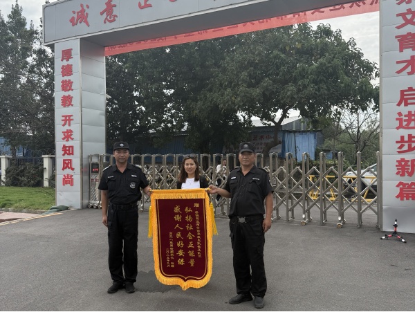 “太感謝袁隊(duì)長(zhǎng)了!要不是他細(xì)心,我這電動(dòng)車說不定就丟了,真是幫了我大忙!”9月3日下午,一位家長(zhǎng)拿著書寫“弘揚(yáng)社會(huì)正能量 感謝人民好安?!钡腻\旗來(lái)到晝錦堂學(xué)校門口,她緊緊握著保安隊(duì)員的手連聲道謝,臉上滿是感激。這溫暖的一幕,源于技防分公司中隊(duì)長(zhǎng)袁秋生對(duì)一輛未鎖電動(dòng)車的細(xì)心保管。